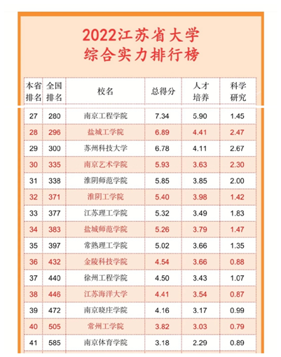 近日,中国管理科学研究院《中国大学评价》正式发布武书连2022中国大学排行榜。我校位列全国本科高校第296位,连续四年排名进入前300。江苏省大学综合实力排名中,我校名列28位,已经连续四年处于前30。