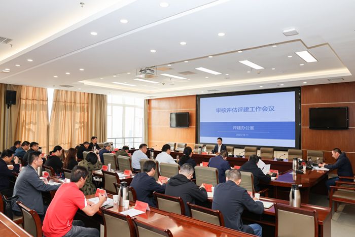 10月11日上午,在希望大道校区行政楼九楼视频会议室,学校召开审核评估评建工作第一次会议,研究部署审核评估阶段性工作,高效有序推进迎评促建工作。党委常委、副校长王伟主持会议并讲话。党办、校办、纪委机关、宣传部、学生处、人事处、教务处、评估处、财务处、发改办、国资处、设备处等部门主要负责人、各二级学院行政负责人及评估处相关人员参加会议。