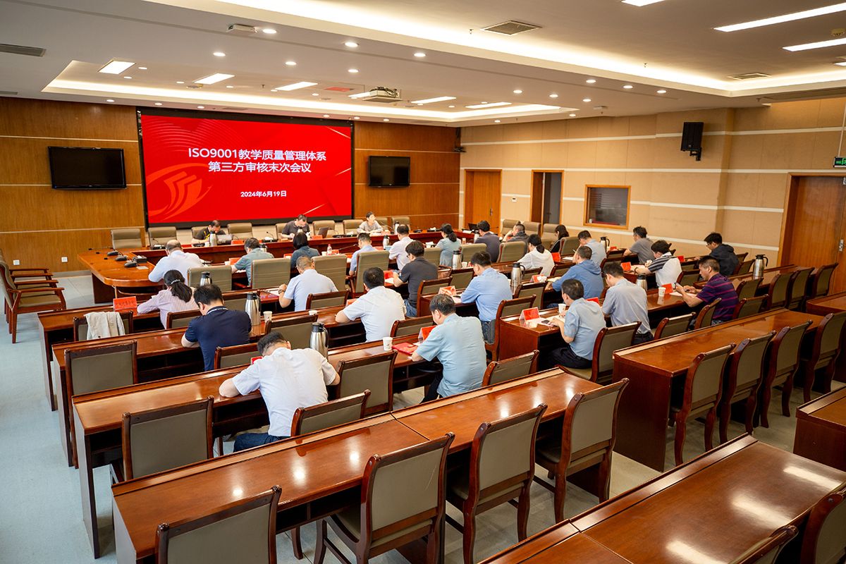 ISO 9001教学质量管理体系审核的首次会议和末次会议,由审核组组长钱亮主持。最高管理者、校长、党委副书记邵荣出席并讲话。管理者代表、党委常委、副校长王伟出席会议。审核组专家、体系内相关部门主要负责人和各二级学院行政负责人参加会议。